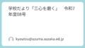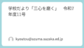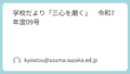 東(あずま)中学校は、須坂市の南東にあり、須坂駅より7.3kmの場所に位置し、旧仁礼村、旧豊丘村の扇の要の位置に建っています。学校からの景観は、北西に長野盆地が、さらにその遠くに戸隠・飯縄・黒姫・妙高・斑尾の北信五岳が一望でき、南は菅平の四阿山(あずまやさん)・根子岳を仰ぐ雄大さです。